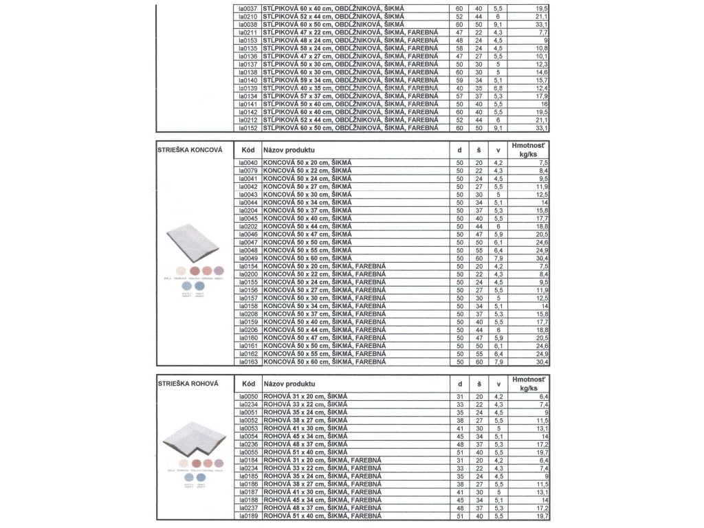 | Kategória: | Betónové striešky šikmé koncové farebné |