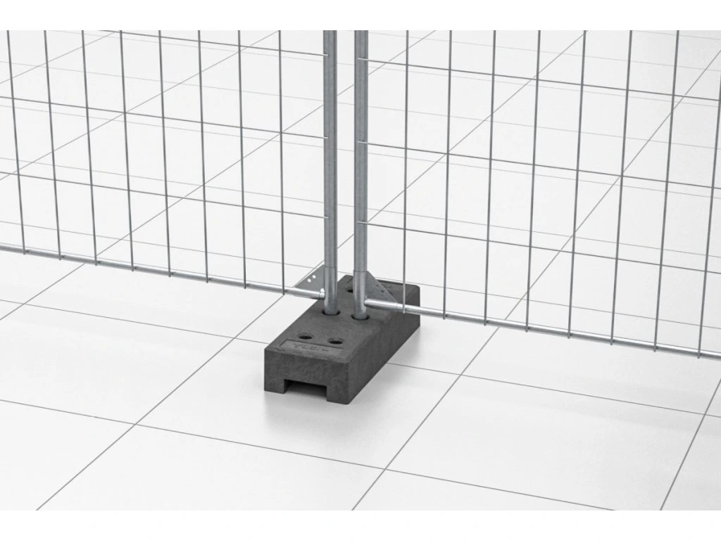 Plastový podstavec mobilného plotu slúži ako pevná a odolná opora pre stĺpiky dočasného oplotenia. Je vyrobený z kvalitného plastu, ľahký, no stabilný. Praktické otvory umožňujú jednoduché upevnenie a jeho nízka hmotnosť zabezpečuje ľahkú manipuláciu a rýchlu montáž.